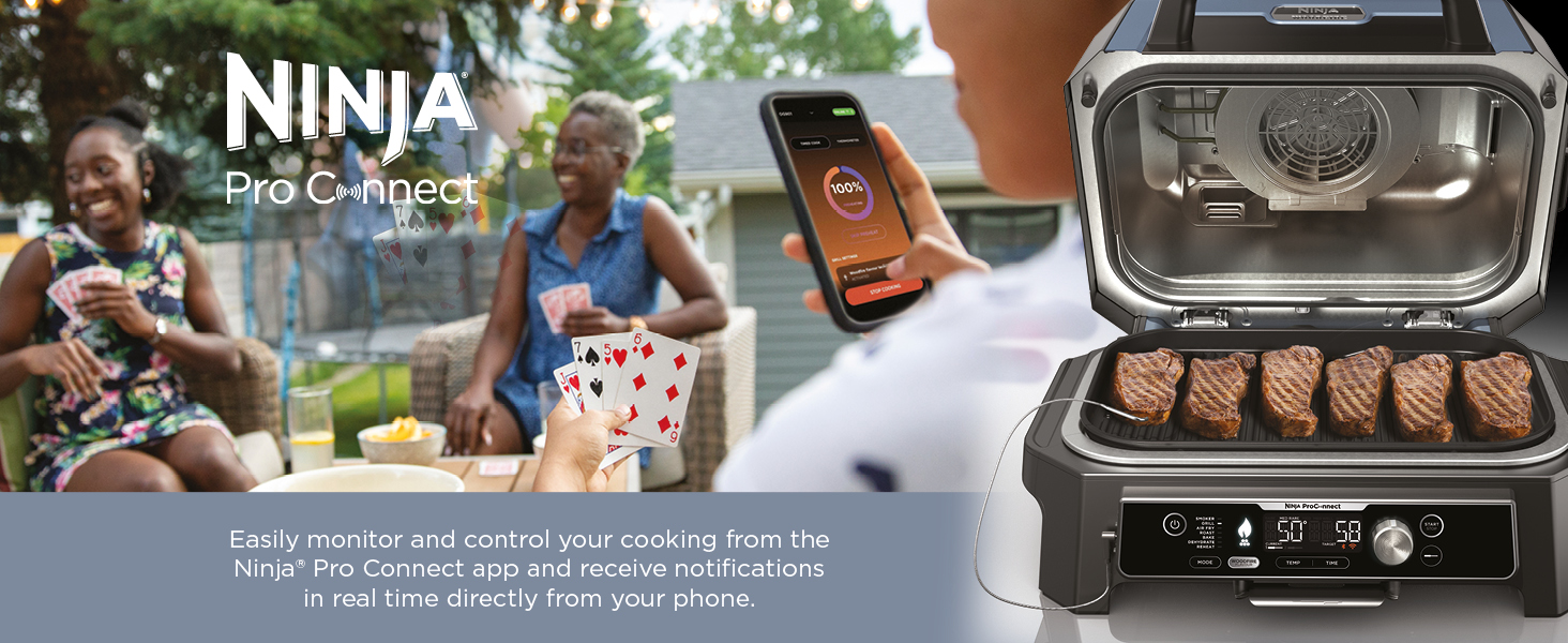 Ninja Woodfire Pro Connect XL Electric Grill and Smoker with App Control, Digital Probe, Large 7-in-1 Outdoor Grill and Air Fryer with Woodfire Pellet, Weather Resistant, Blue and Black OG901UK