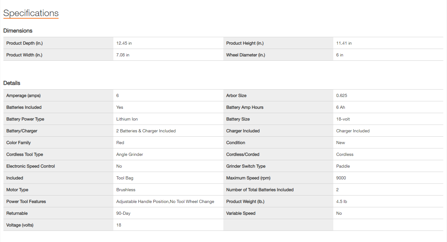 Includes: 2981-20 M18 FUEL 4-1/2 in. - 6 in. grinder, slide switch, lock-on, one M18 REDLITHIUM HIGH OUTPUT XC6.0 battery, type 27 6 in. guard, side handle, FIXTEC nut, backing flange, wrench