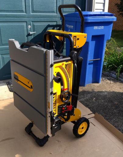 Features a 15.0A high torque motor with the power to cut pressure treated lumber and hardwoods. Rack & Pinion Telescoping Fence System Make fence adjustments fast, smooth and accurate. Rolling stand designed for easy set up and breakdown with excellent stability. Other Specs: Max rip to left of blade – 22inch | Max rip to right of blade – 32-1/2inch | Max width of Dado – 13/16inch | Arbor size – 5/8inch | Amps – 15 | Depth of cut at 45inch – 2-1/4inch | Depth of cut at 90° – 3-1/8inch | No Load Speed: 4800 RPM. Your purchase includes one Dewalt table saw, 10inch 24-tooth carbide blade, rolling stand, push stick, miter gauge, rip fence, 2x blade wrenches, blade guard assembly manual.