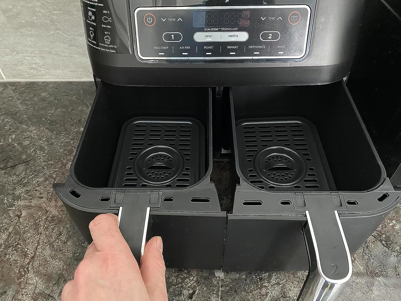 We have been thinking of purchasing an airfryer for sometime. We spent time researching on YouTube and among other places to find the right one for us. This appears to be of excellent quality and used by many people. Ninja is a well designed machine and we where pleasantly surprised by how compact it is. The noise level is very low even when you use both sides. Cleaning is very easy just using hot soapy water. I’m pleased to see that you can purchase replacement parts ie crisper trays and draws is you need to. The starter instructions are well written and provide you with tables of cooking instructions for many food items. I would recommend buying this product to anyone.